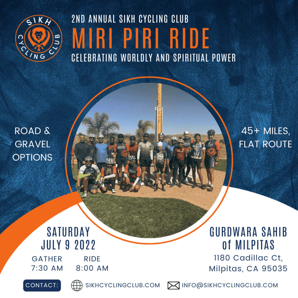 This year, we’re riding around the Bay area starting at Gurdwara Sahib of Milpitas (1180 Cadillac Ct, Milpitas, CA 95035) through Silicon Valley, for a total mileage of about 45 miles. This year, in the spirit of miri and piri, we’re offering gravel options on the route!
