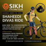 Join us on Saturday, June 8th in Fremont, CA as we cycle to commemorate the 40th anniversary of Operation Bluestar.